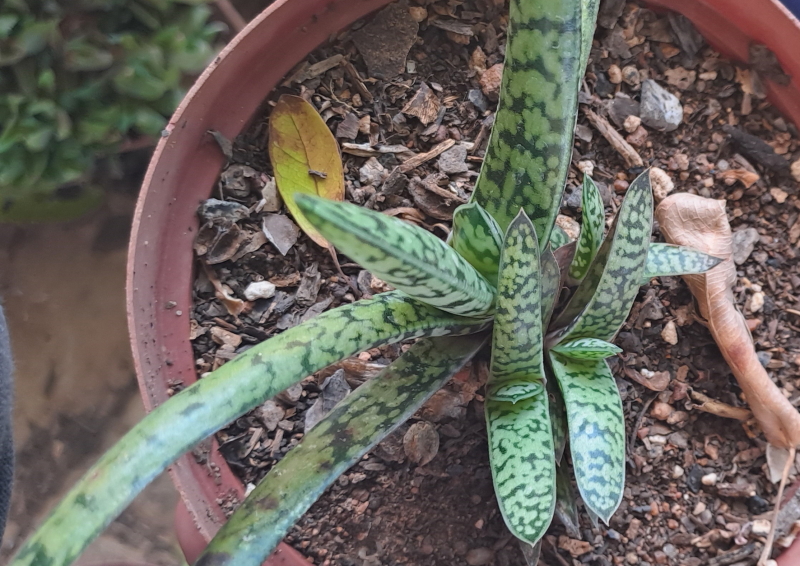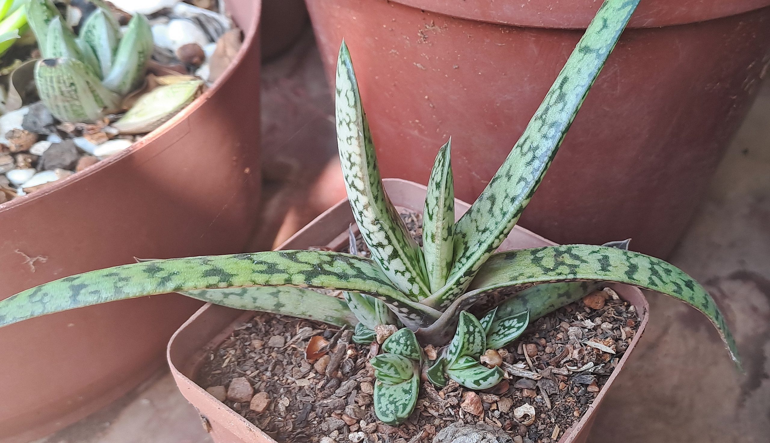 Gasteria bicolor has smooth, strap-like leaves with pointed tips. When exposed to direct sunshine, the dark green leaves with lighter mottled patterns turn reddish-brown. The plant will form an untidy clump over time.