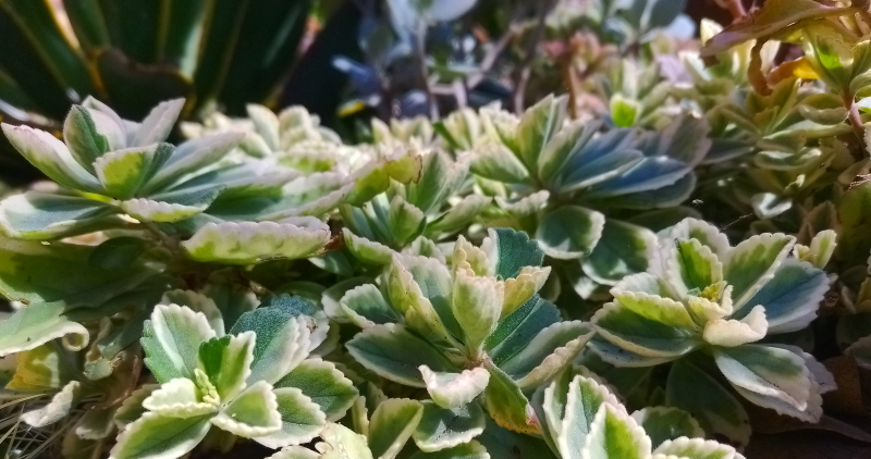 Common Name(s): Variegated Lobster Flower | Mature Size: 30 cm in height (Forms a large mat) |