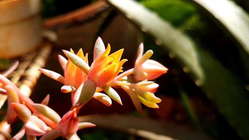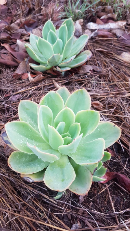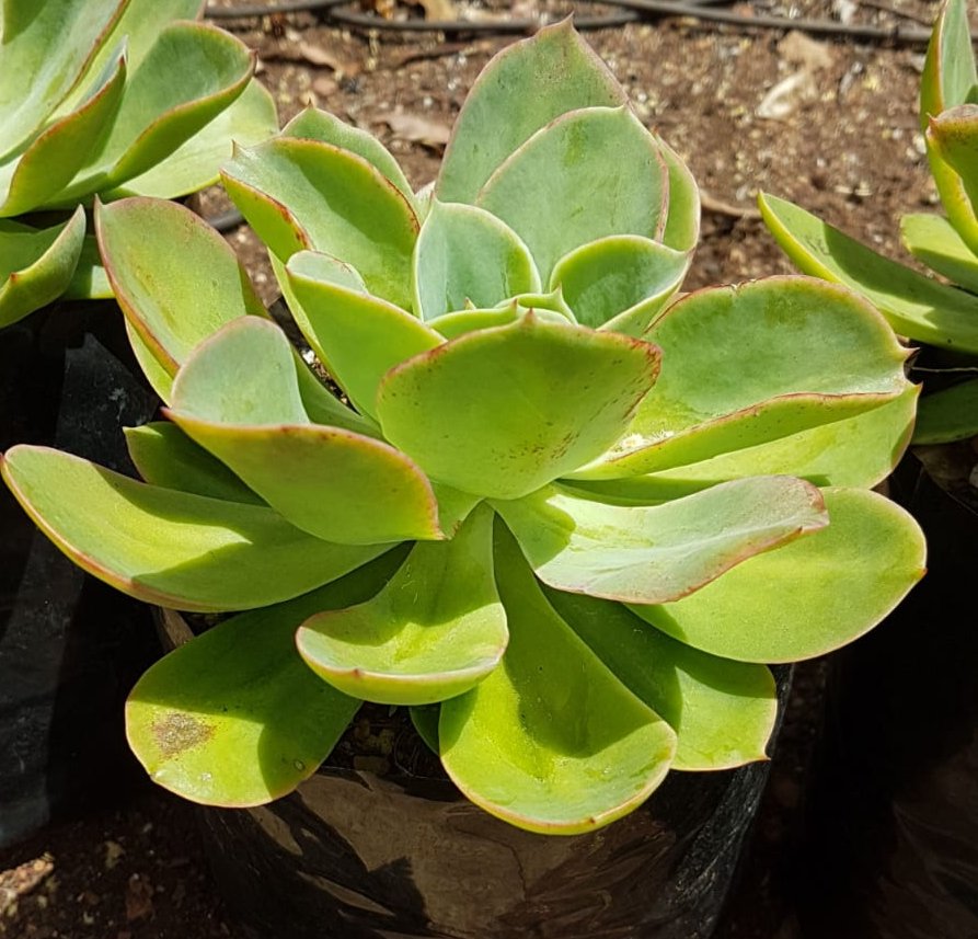 The plant’s foliage is stunning with its blue-green hue. The leaves are covered in a delicate white powder, giving them a mesmerizing appearance. The rosettes are nearly flat on the upper surface but arch upwards towards the middle of the plant. In cooler temperatures, the edges of the leaves can take on lovely shades of pink to red, adding further visual interest to the plant’s overall beauty.